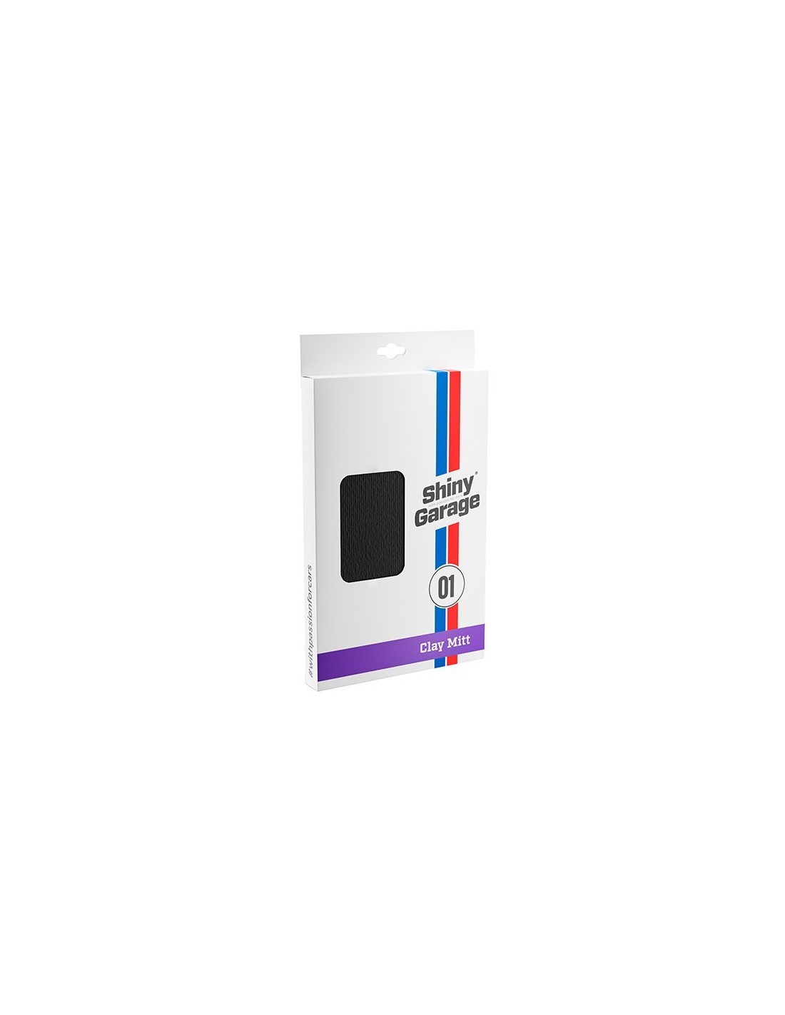 Shiny Garage Clay Mitt es un guante que elimina la contaminación orgánica de las superficies como pintura y cristales utilizando tecnología avanzada de polímeros de alta tecnología sin necesitar ningún producto químico. Tras la descontaminación la superficie resulta suave y sin asperezas. El guante tiene una capacidad de trabajo de hasta 50 coches.